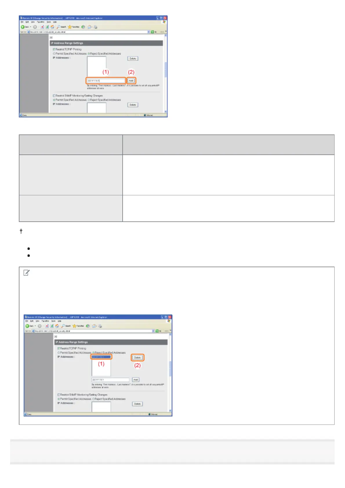 (1) Select an IP address you want to delete.