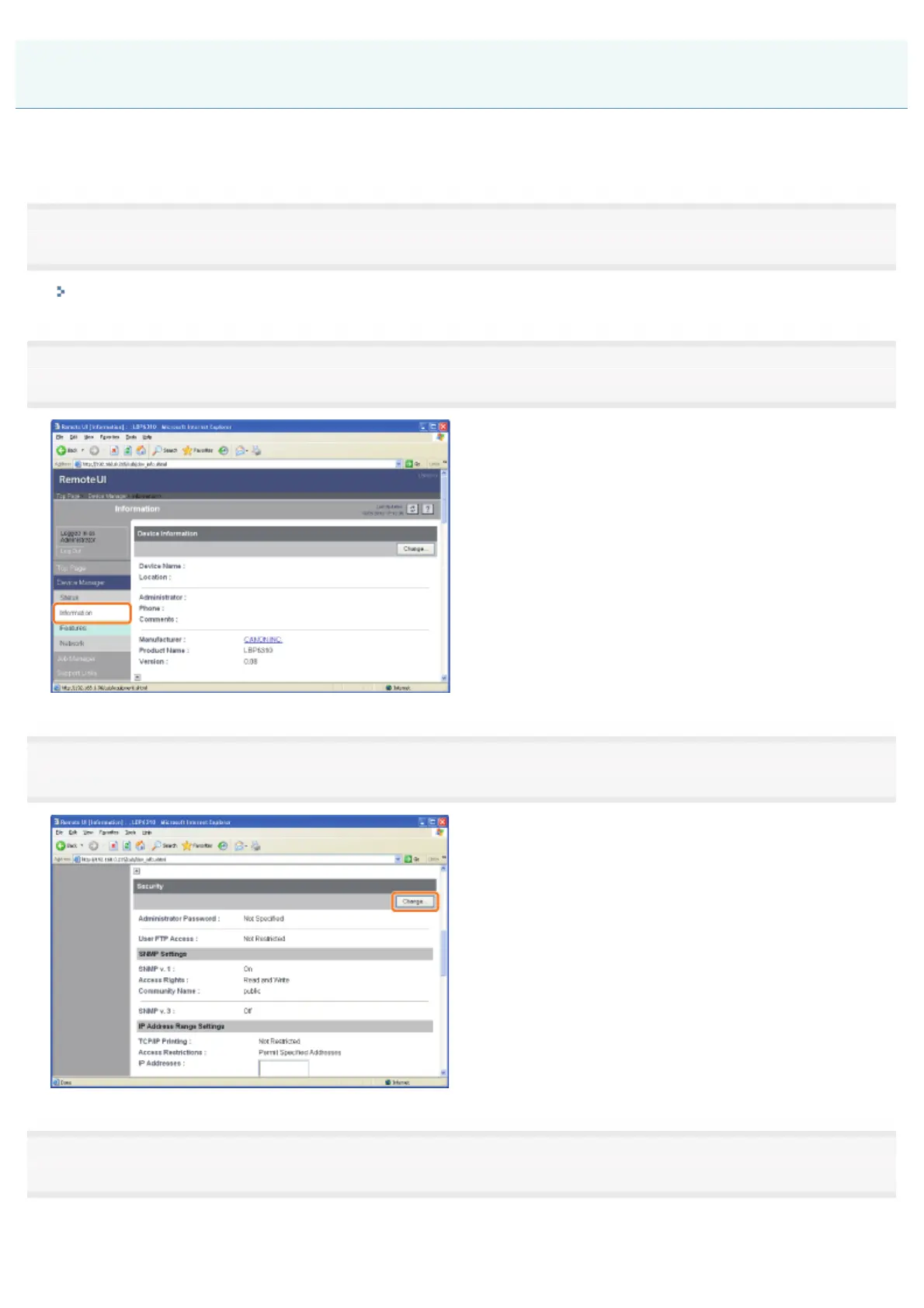 This section describes the procedure for specifying the settings using the Remote UI. To specify the settings using FTP