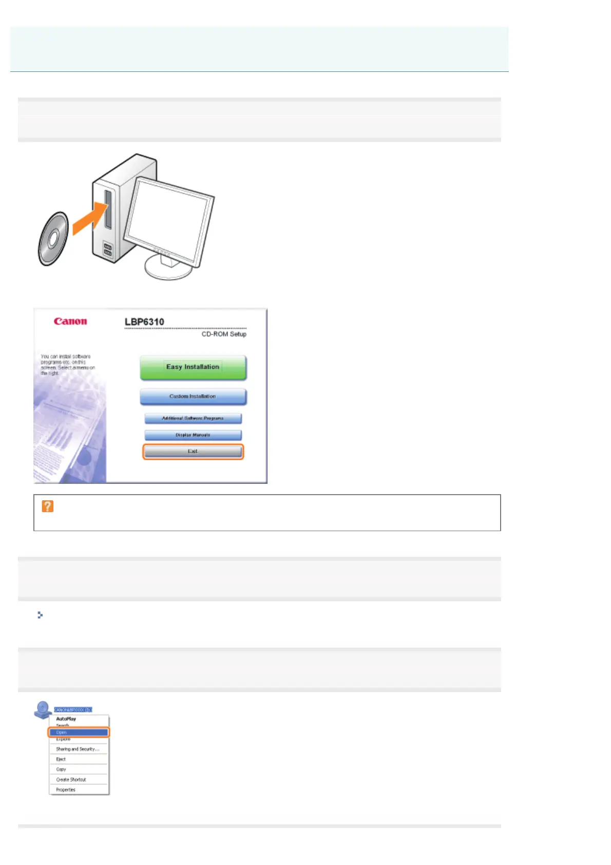 Right-click the CD-ROM icon, then select [Open] from the pop-up menu.
