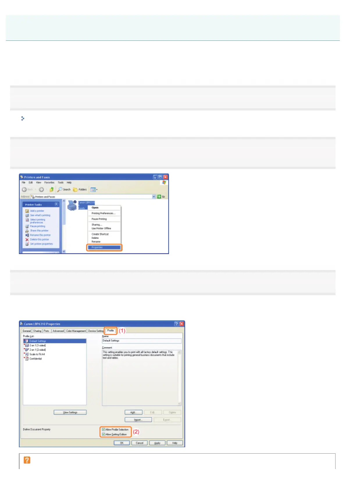 (2) Select the [Allow Profile Selection] and [Allow Setting Edition] check boxes.