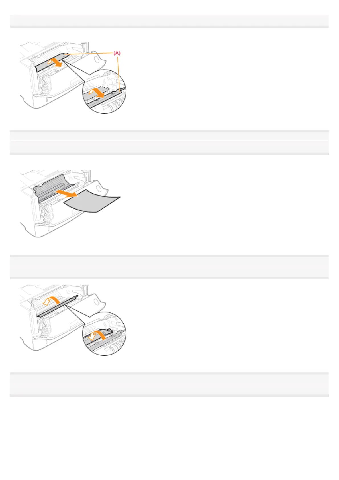 Remove the jammed paper as horizontally as possible to prevent unfixed toner from spilling.