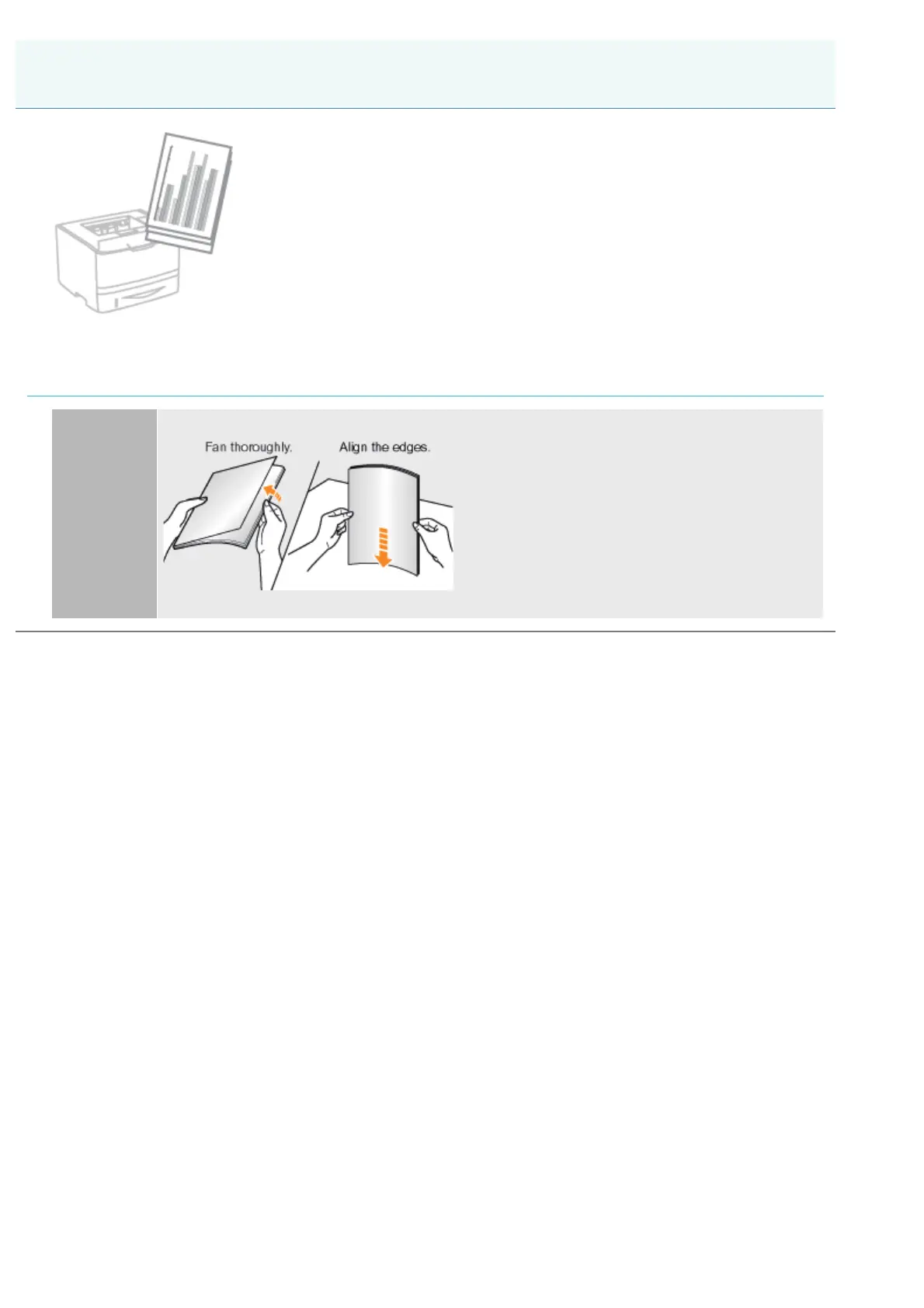 Fan the paper thoroughly, and then align the edges of the stack properly on a hard, flat surface.