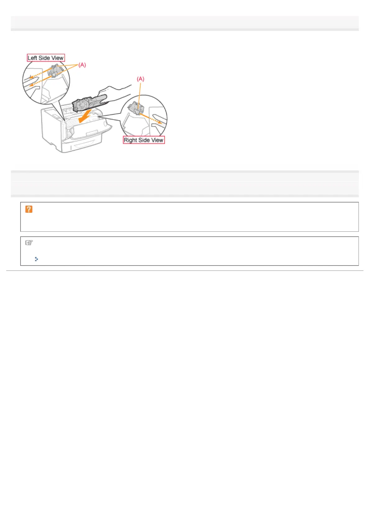 Push the toner cartridge into the printer firmly until it touches the back of the printer while aligning (A) on both sides of the