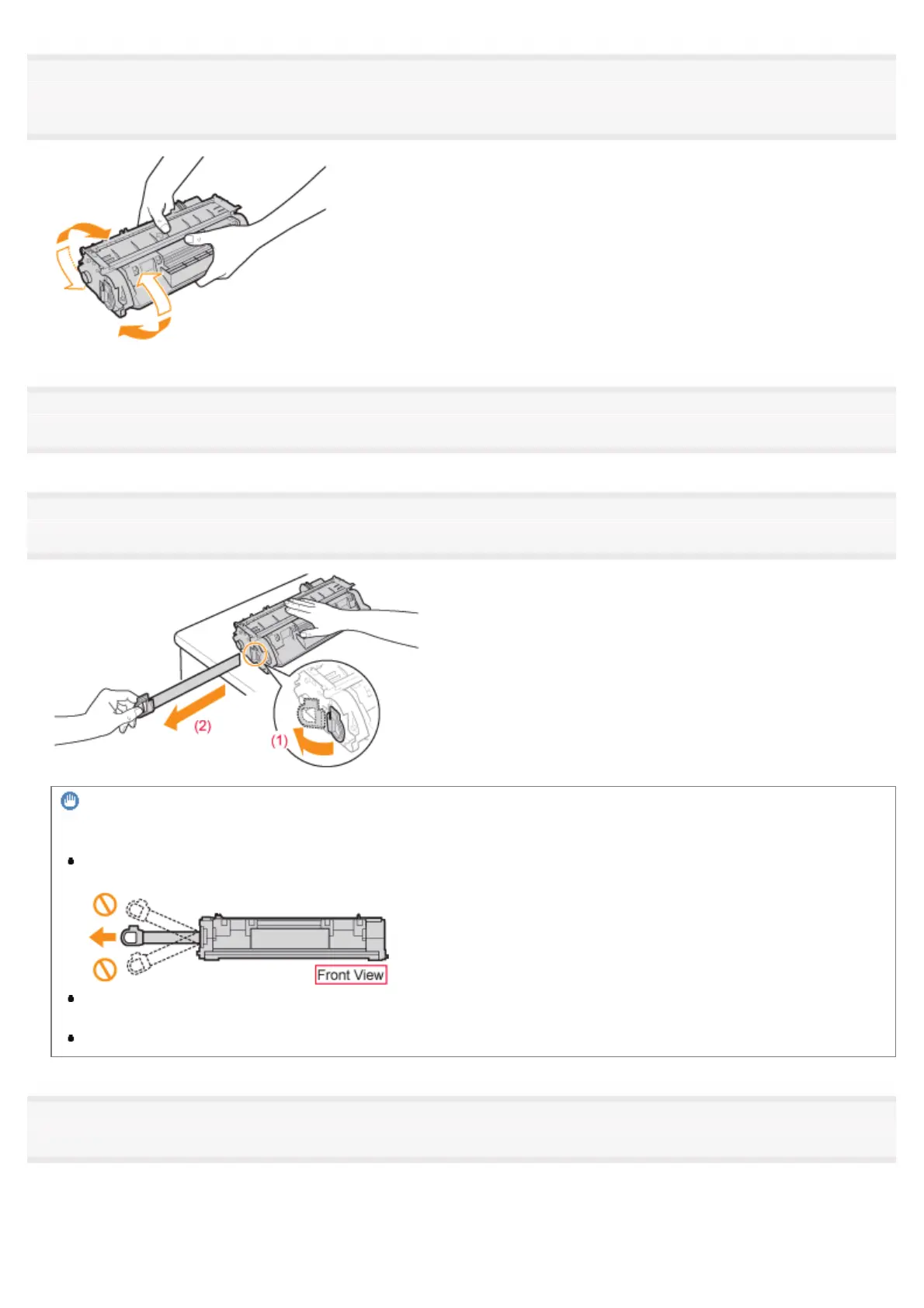 Shake the toner cartridge five or six times as shown in the figure to evenly distribute the toner inside