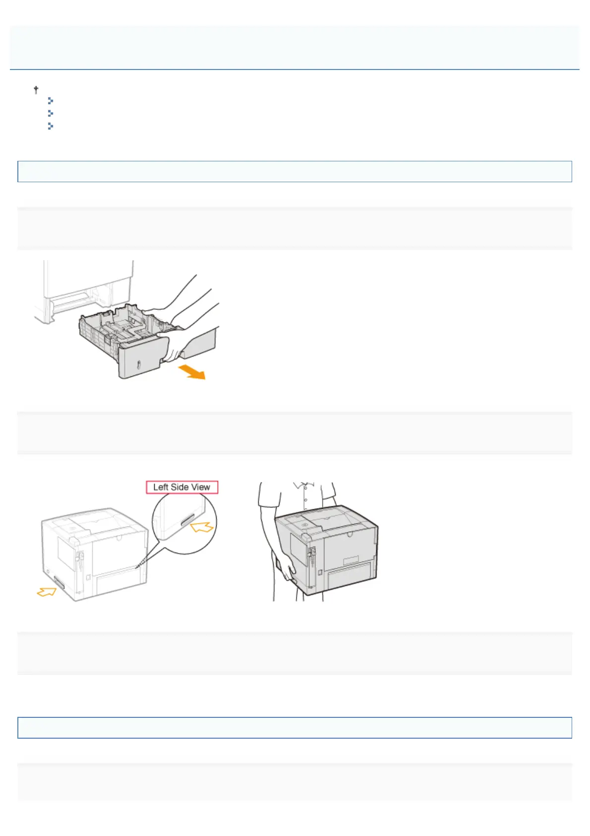 After confirming that the covers and trays are closed, carry the printer by holding it by the lift handles from the front side.