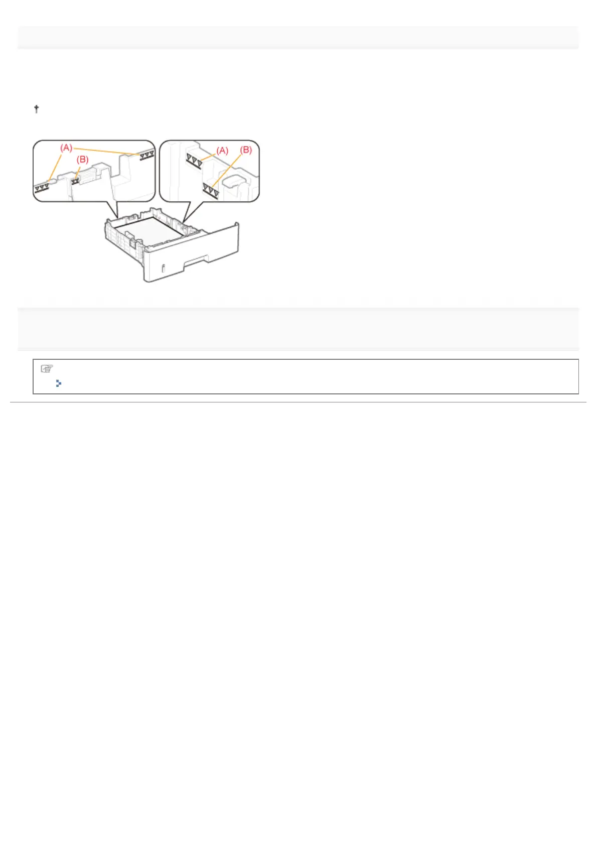 Make sure that the paper stack does not exceed the load limit mark lines (A) or (B).