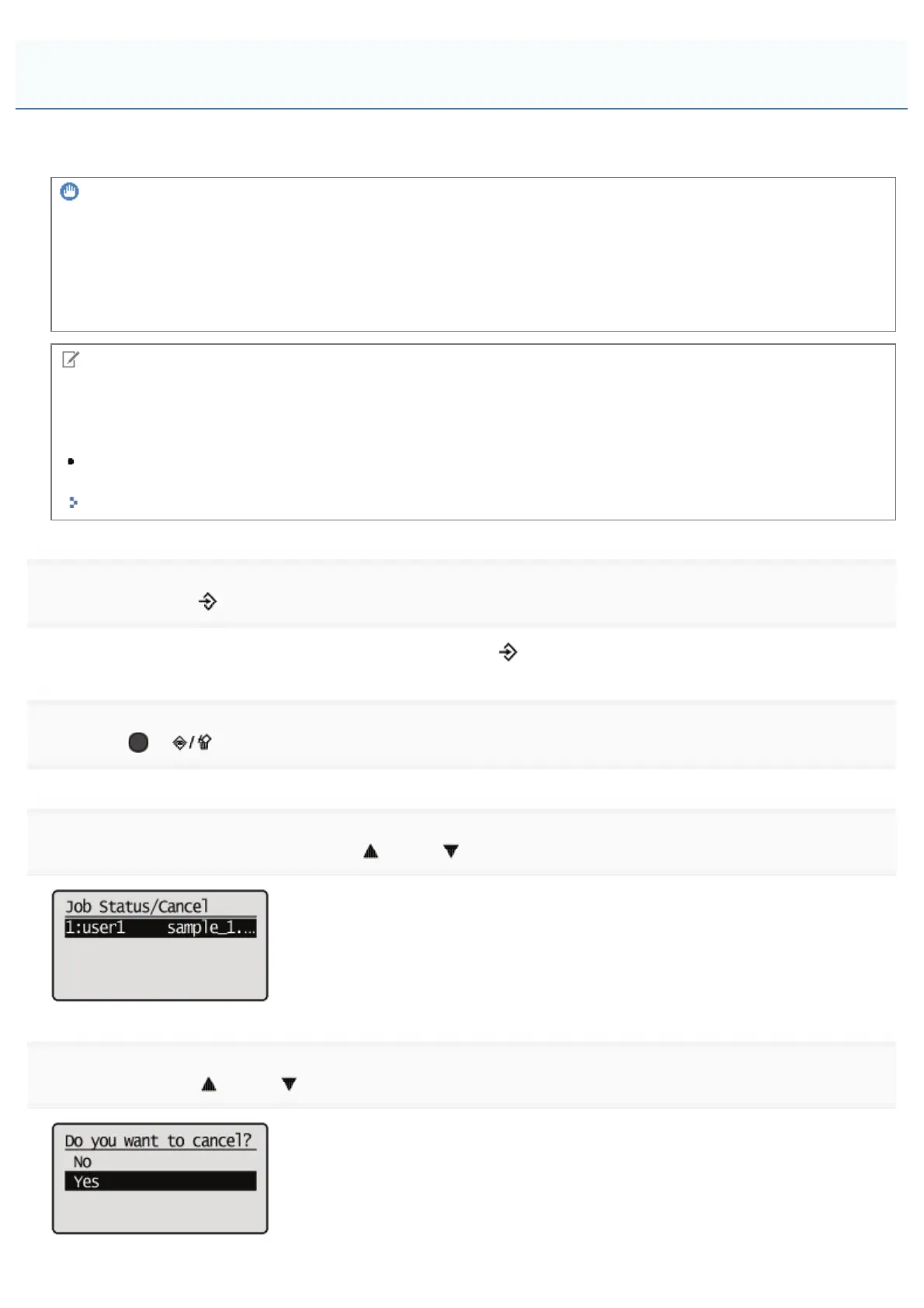 When you want to cancel printing using the printer's control panel, run "Job Cancel" using the following procedure. A job