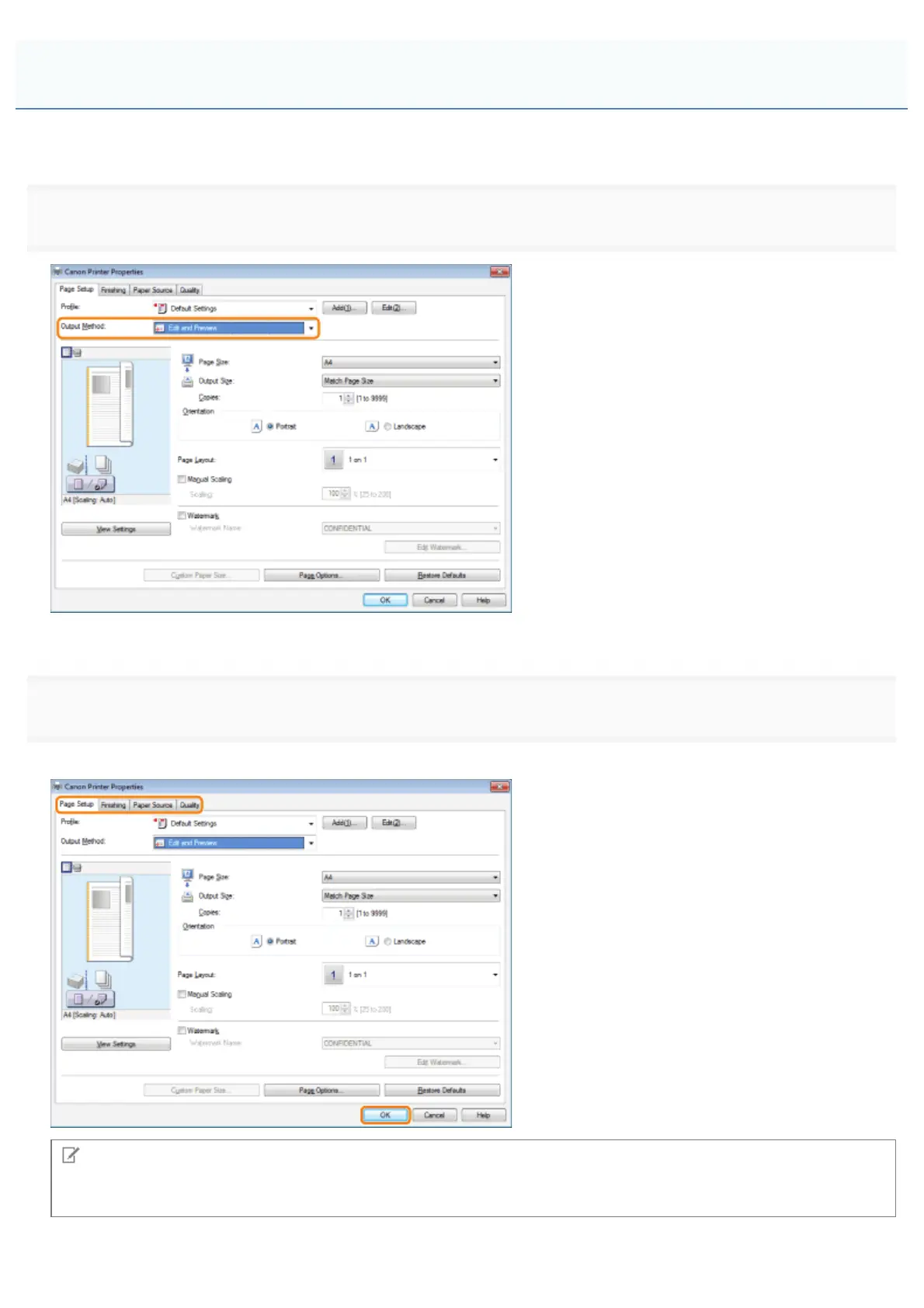 Select [Edit and Preview] from [Output Method].