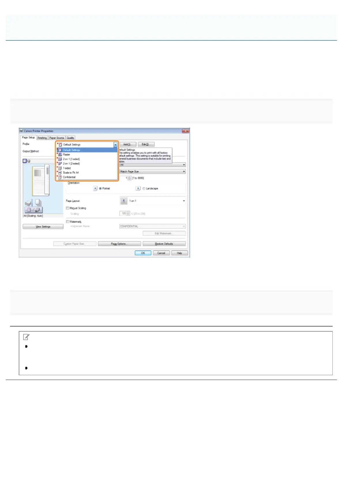 For instructions on how to display the printer driver screen, see "Printing" or "Configuring the Default Print Settings."
