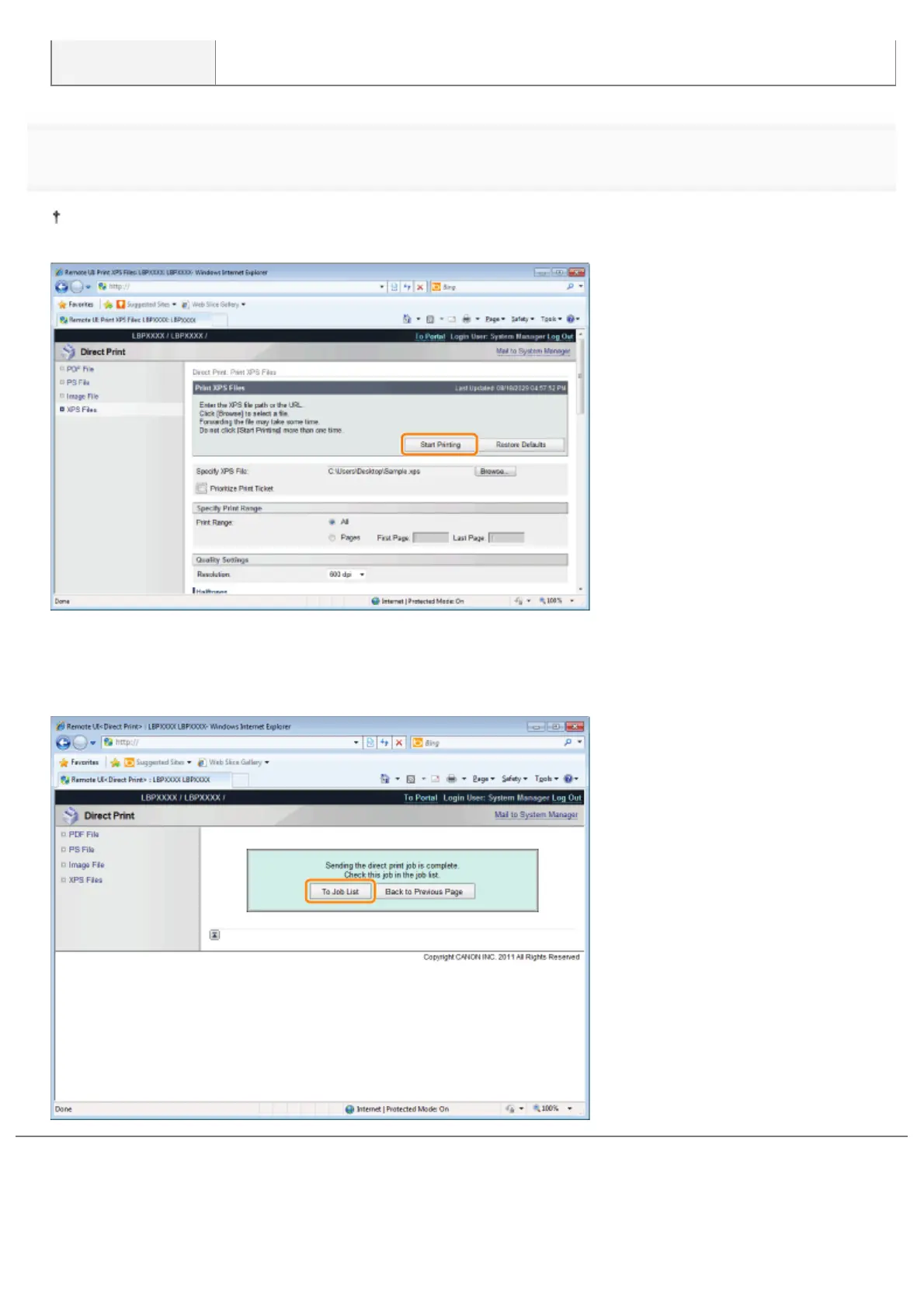 Press [To Job List] to check the print job that was sent.