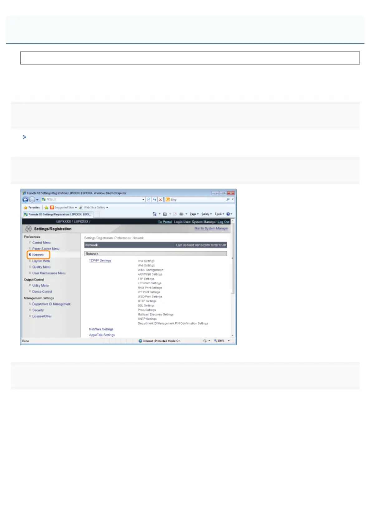 Click [Network] under [Preferences] in the [Settings/Registration] menu.