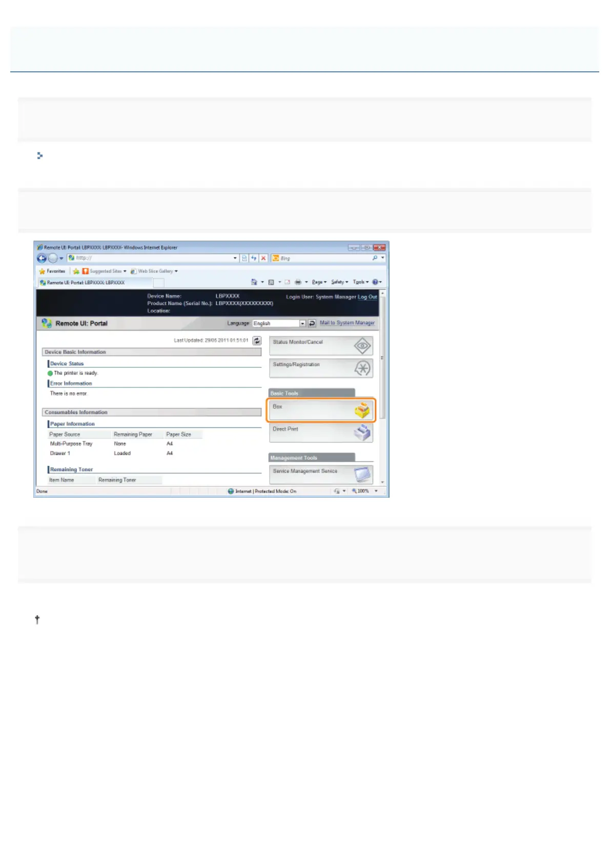 You can also display the job list inside the box by clicking on the icon displayed on [Box Number].