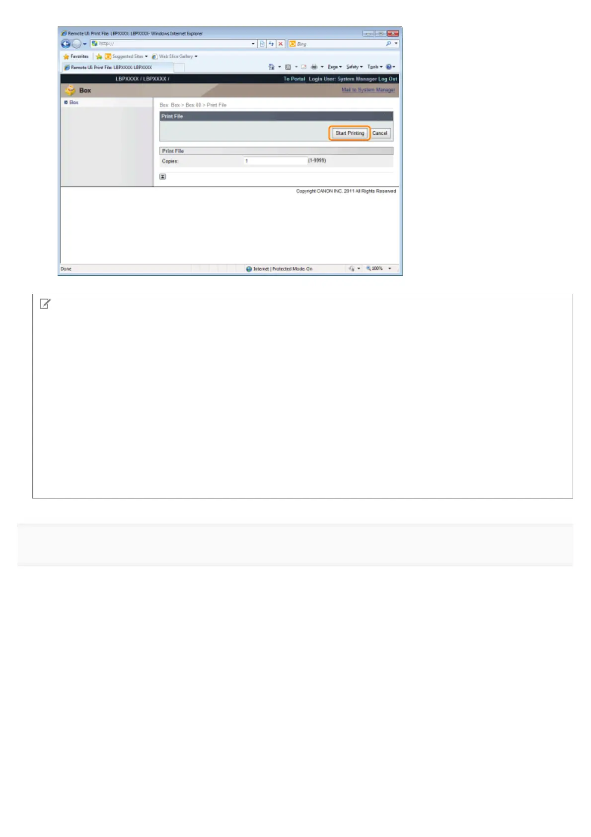 You can start printing by entering the registered department ID and password in [User Name] and [Password].