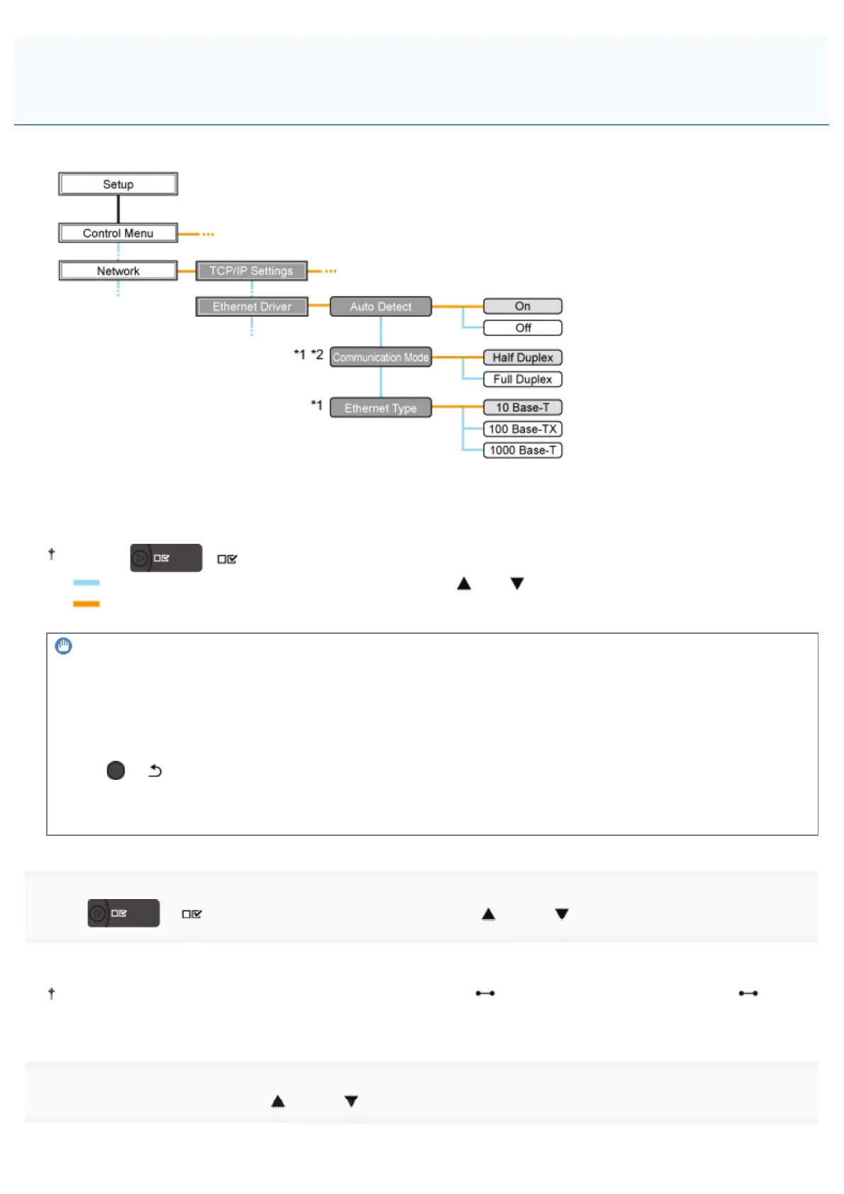 [Communication Mode] and [Ethernet Type] are displayed when [Auto Detect] is set to [Off].