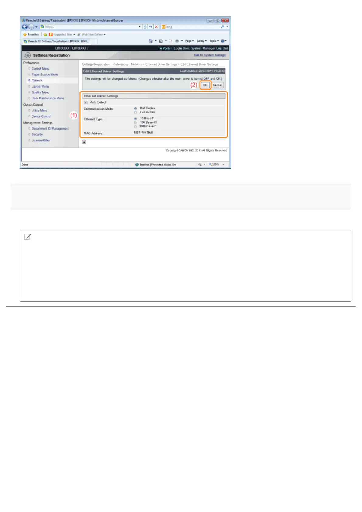 ĺ After performing a hard reset or restarting the printer, the settings are effective.