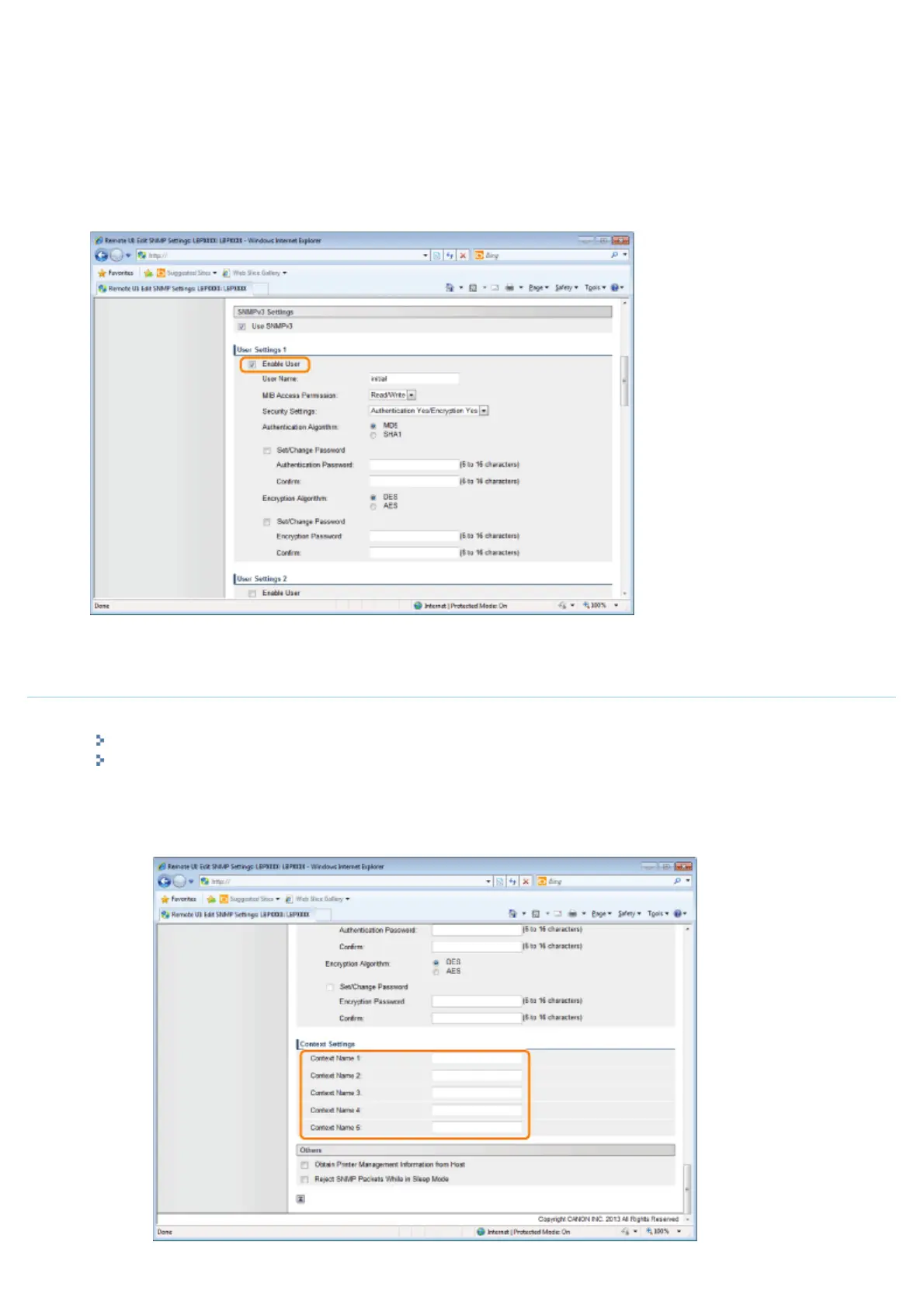 1. Enter the context names used by the SNMPv3 protocol in [Context Name 1] to [Context Name 5] under