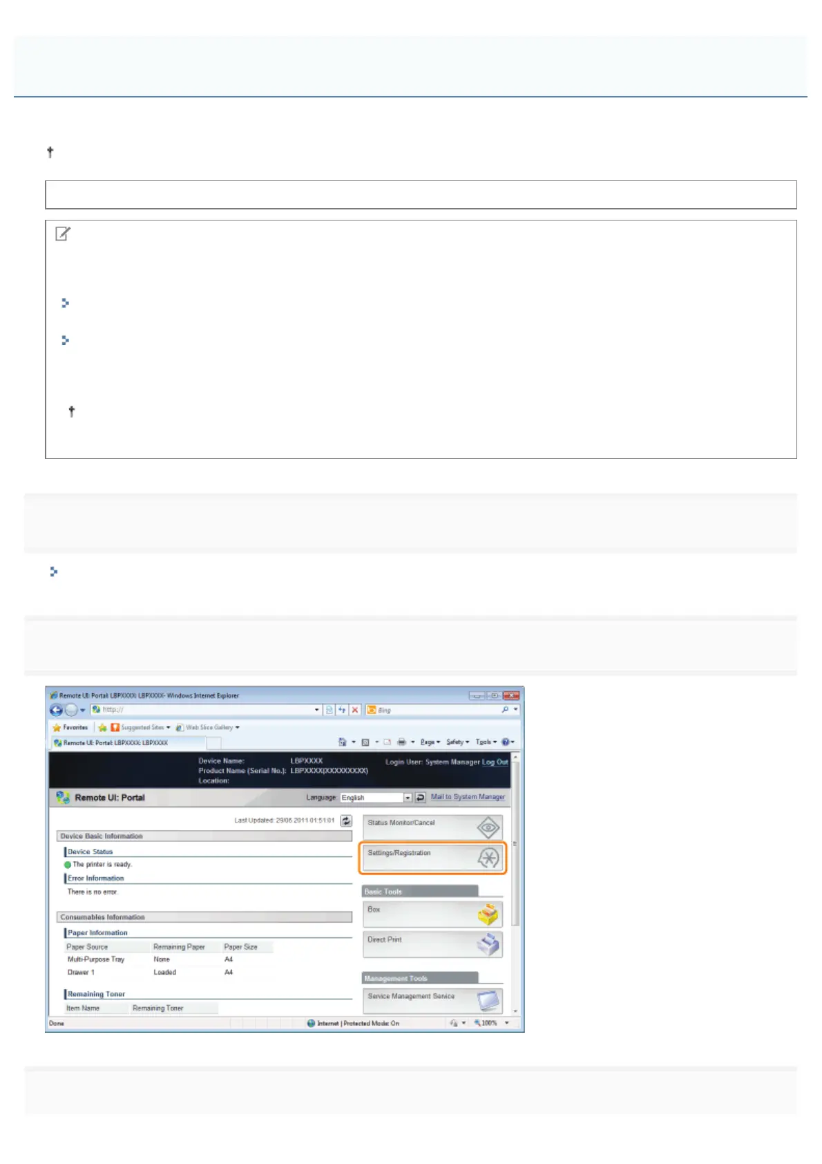 This section describes the procedure for specifying the settings using the Remote UI.