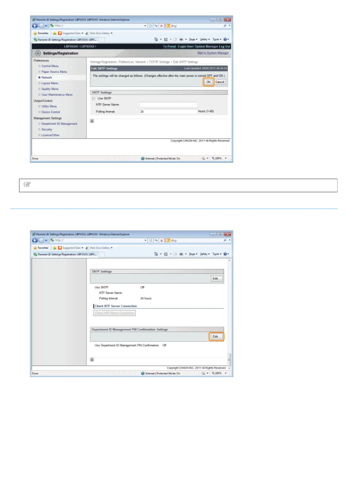 (1) Click [Edit...] in [Department ID Management PIN Confirmation Settings].