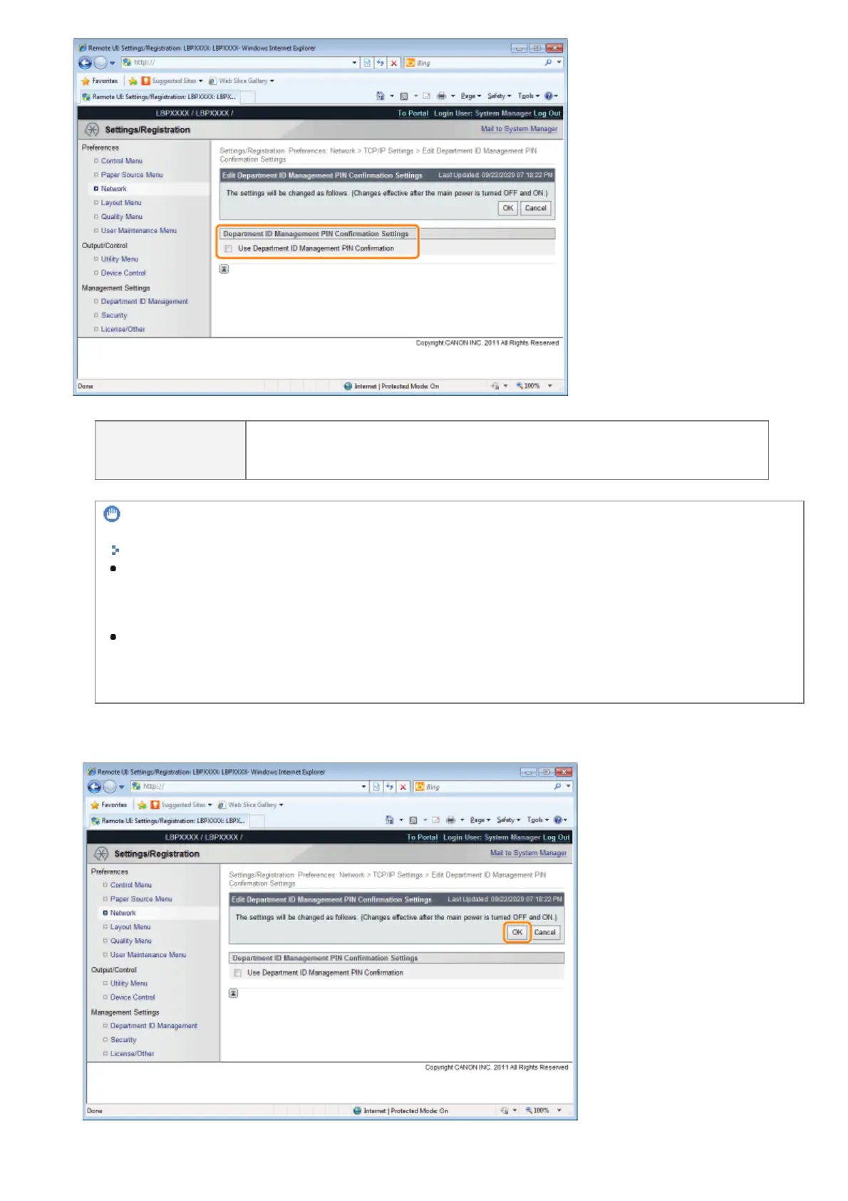 passwords. Even if you enable [Department ID Management PIN Confirmation Settings], Department IDs