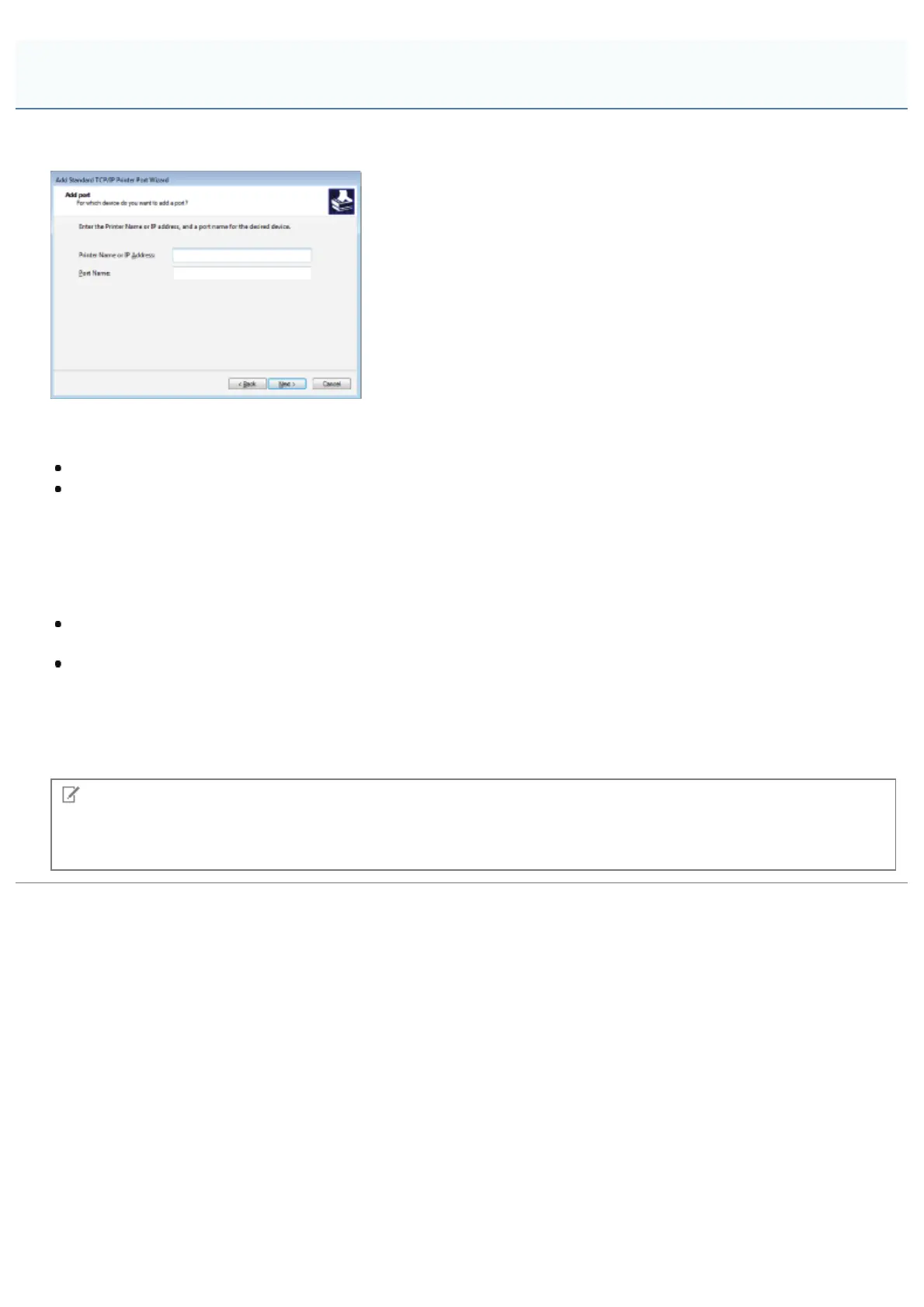 Depending on the method for setting the IP address of the printer, the value to be entered in [Printer Name or IP Address]