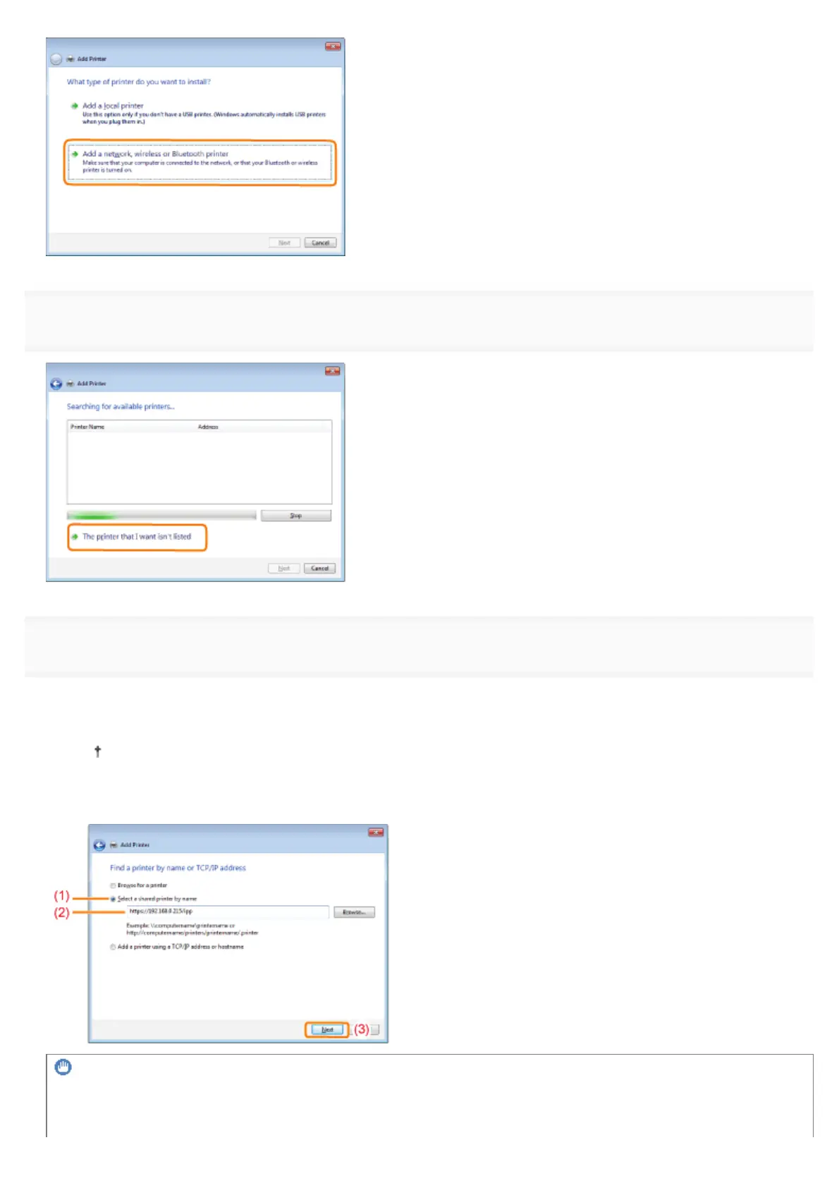 (2) Enter "http://<the IP address or name of the printer>/ipp."