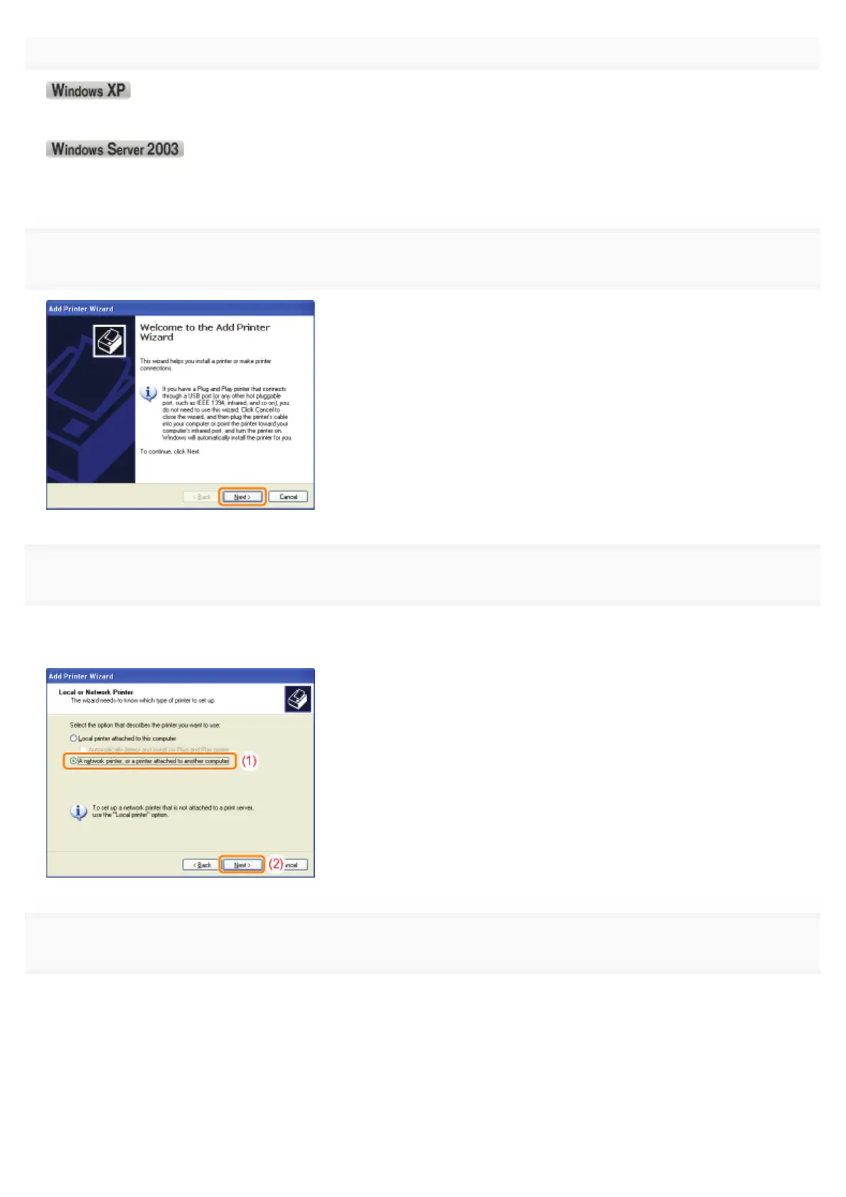 (1) Select [A network printer, or a printer attached to another computer].