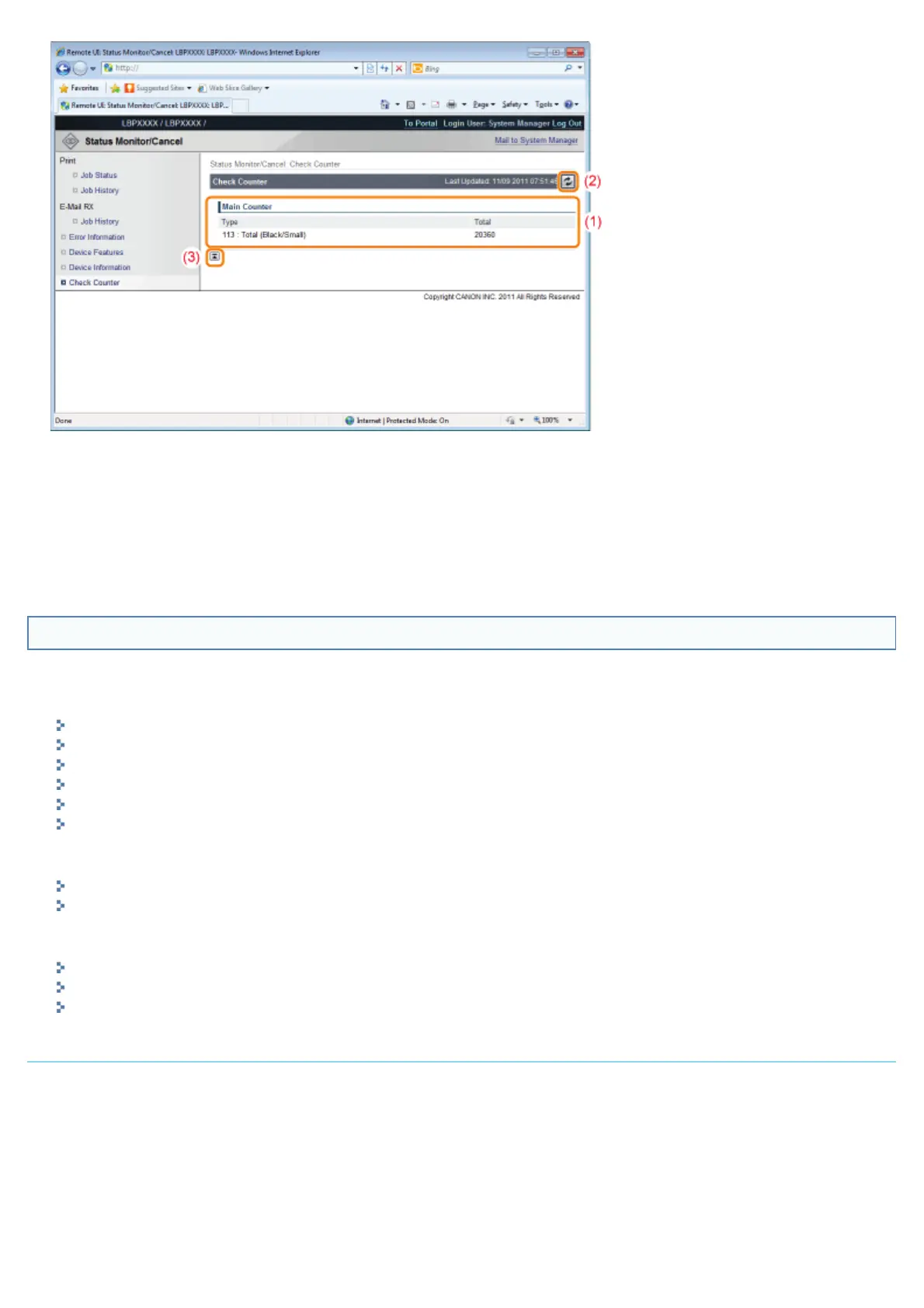 The following pages show the settings that can be checked using the [Settings/Registration] menu.
