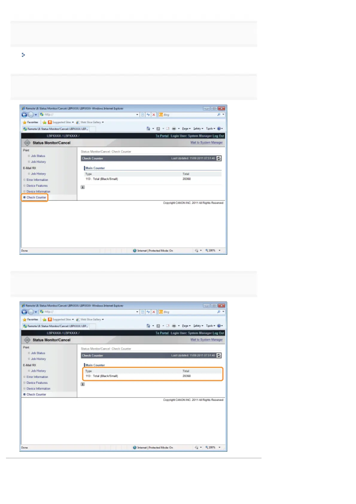 Select [Check Counter] from the [Status Monitor/Cancel] menu.