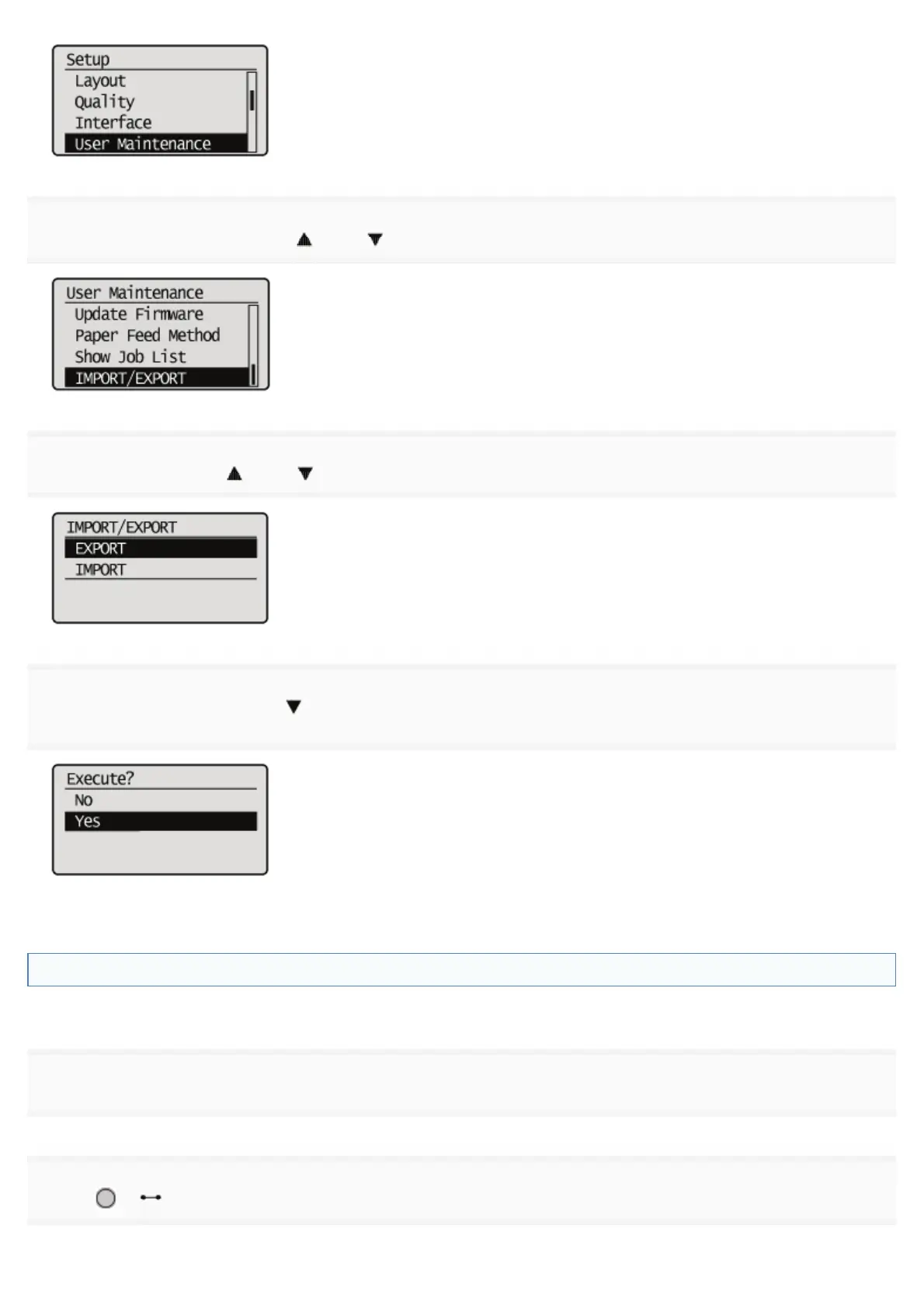Select [EXPORT] with [ ] and [ ], and then press [OK].