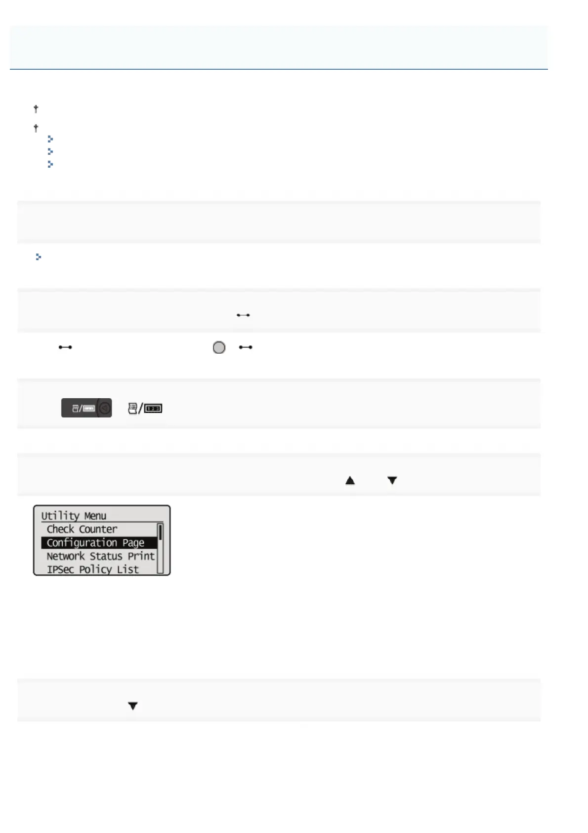 Select [Configuration Page] or [Network Status Print] using [ ] or [ ], and then press [OK].