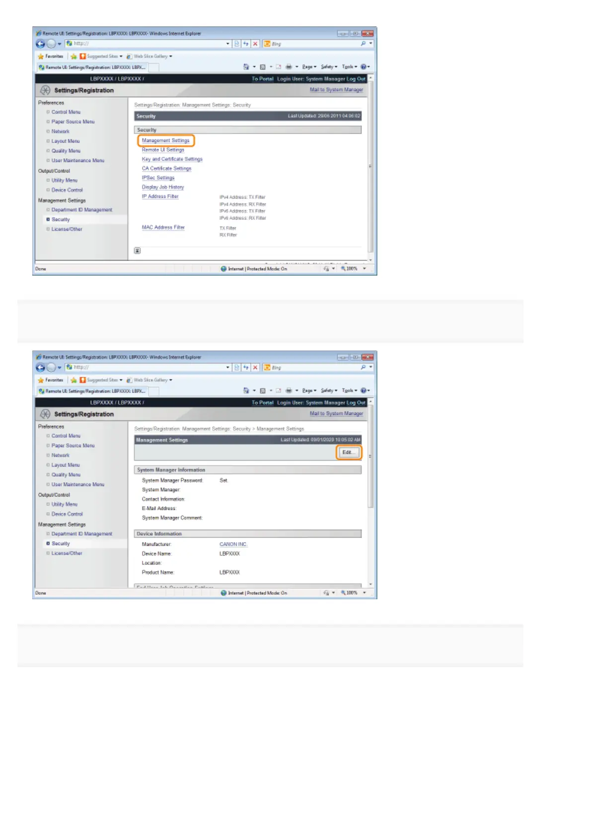 Click [Edit...] under [Management Settings].