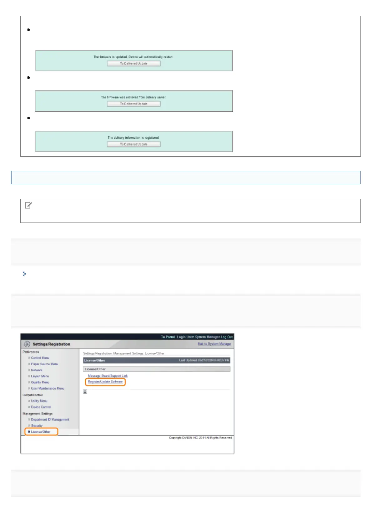 The firmware is applied after the new firmware is downloaded from the delivery server. When the application is