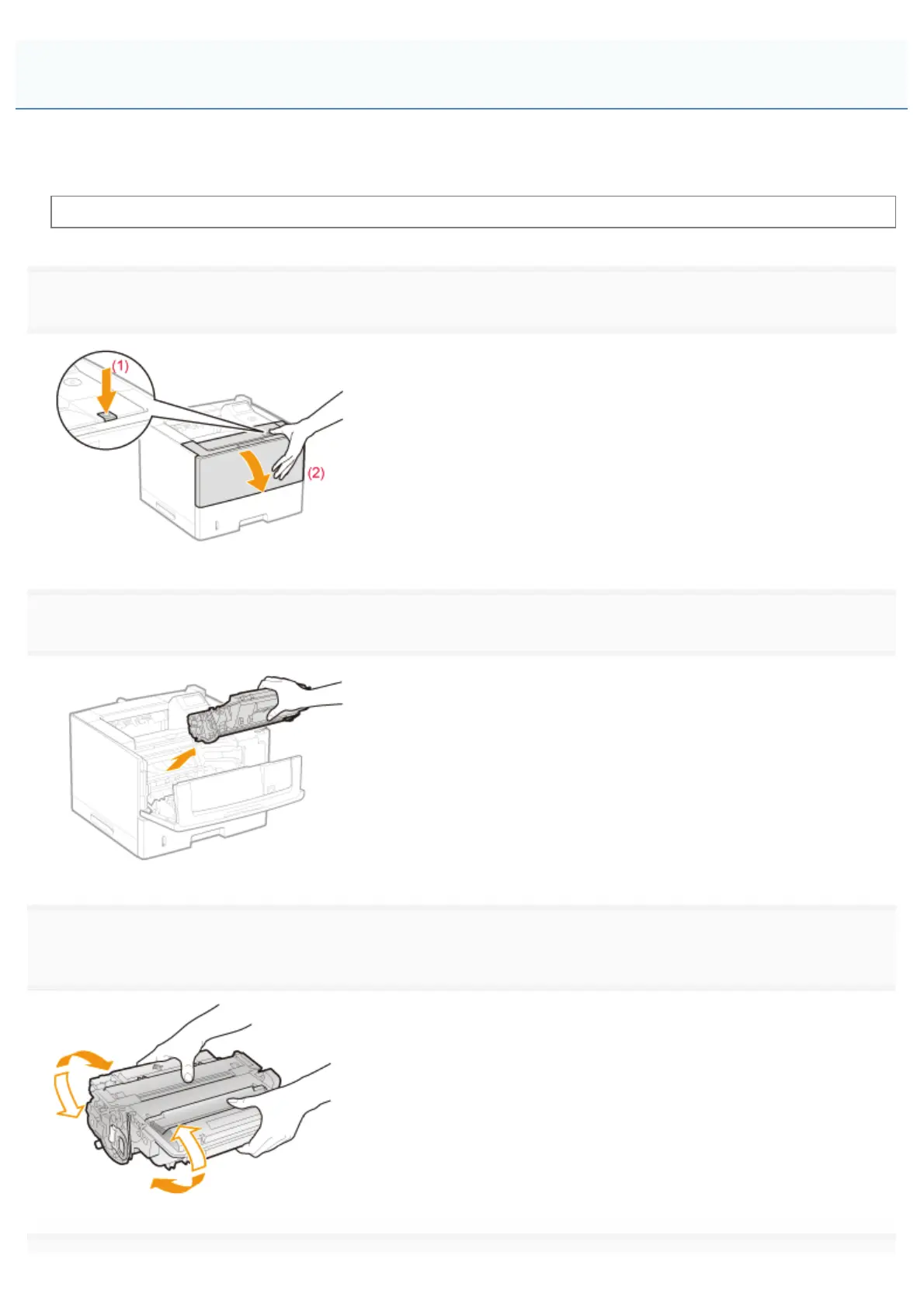 Shake the toner cartridge five or six times as shown in the figure to evenly distribute the toner inside