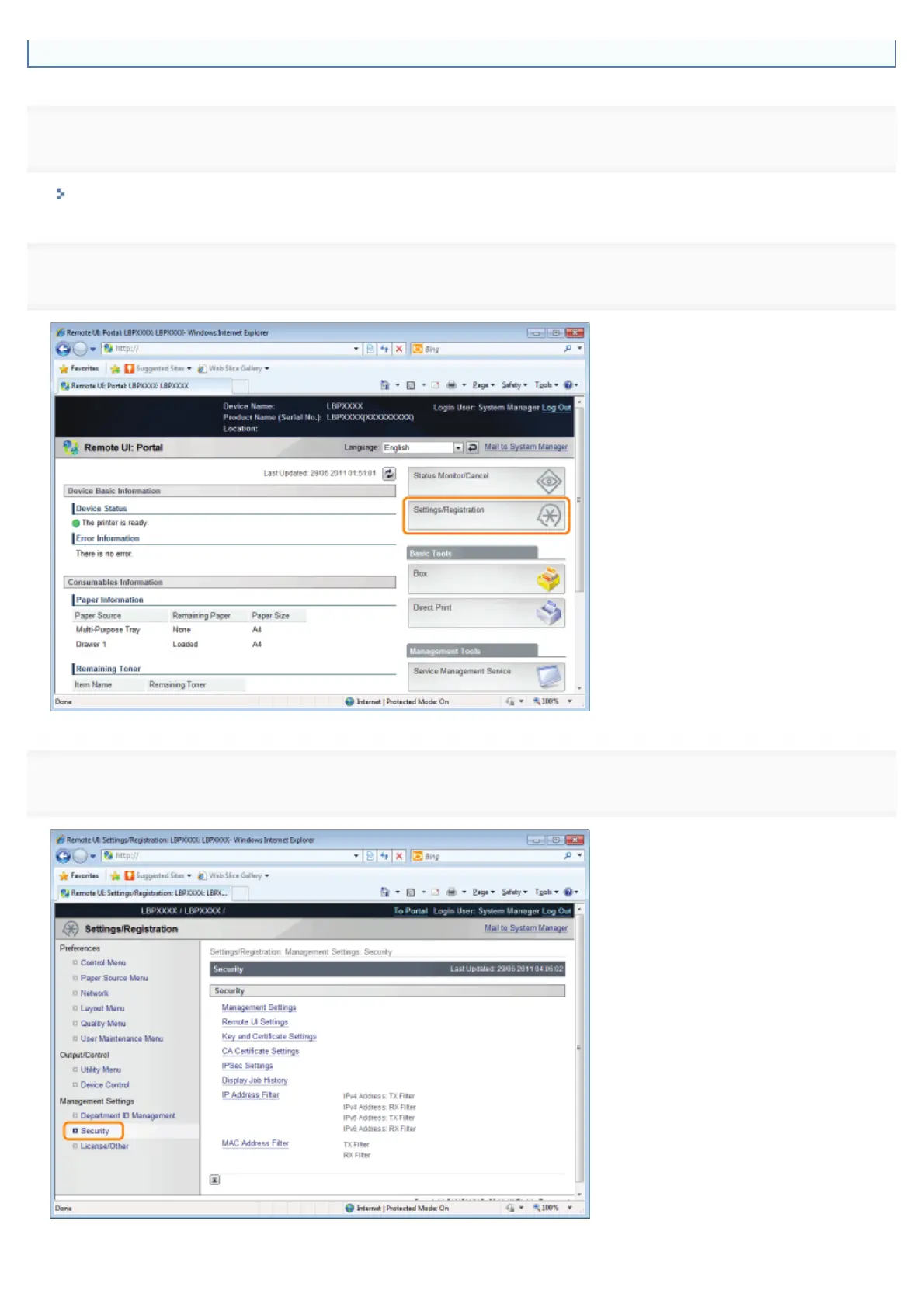 Start the Remote UI, and then log in as Administrator.