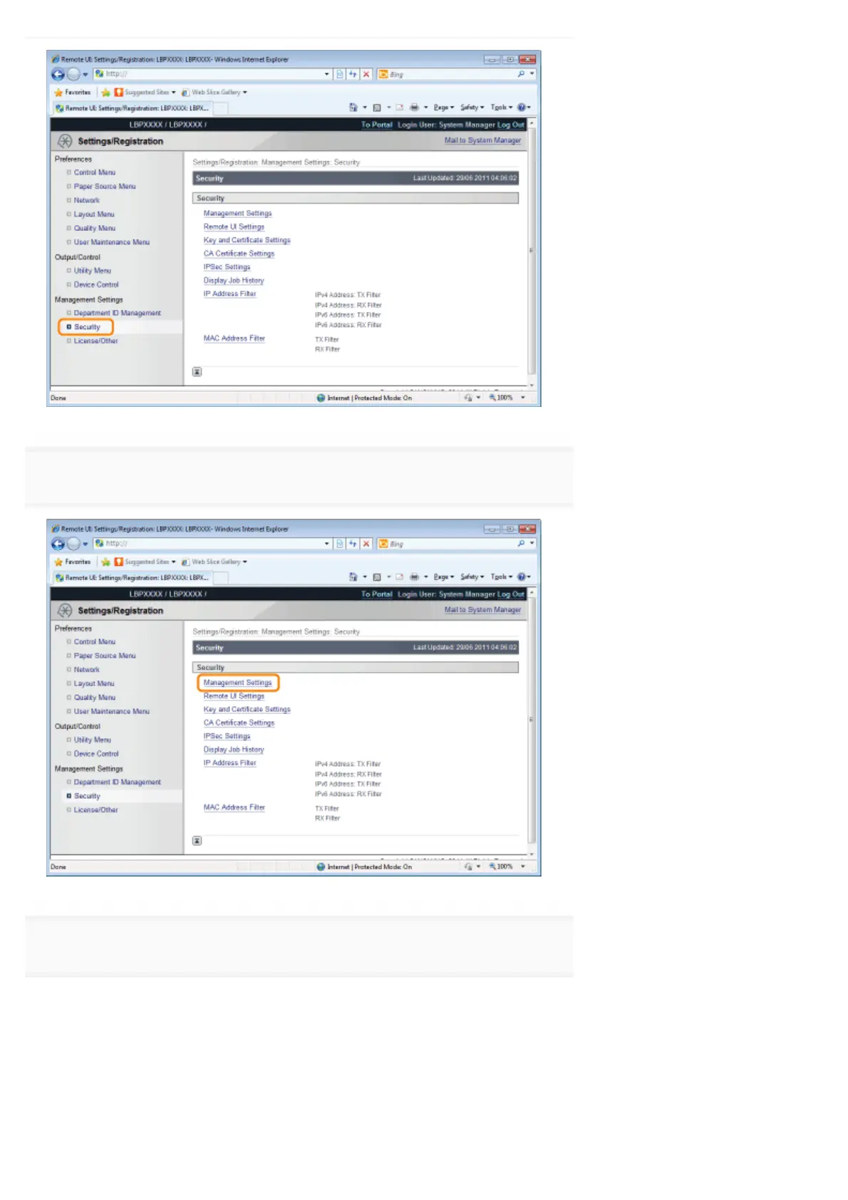 Click [Management Settings].
