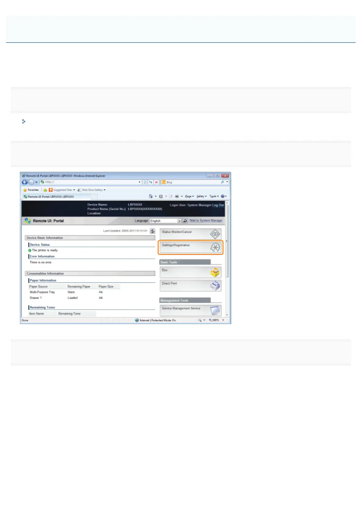 Start the Remote UI, and then log in as Administrator.