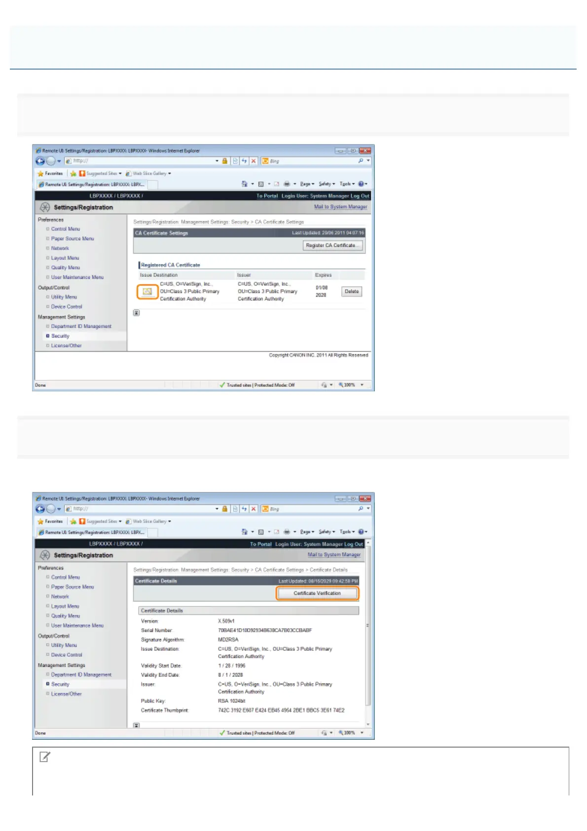 If you want to verify the certificate, click [Certificate Verification].