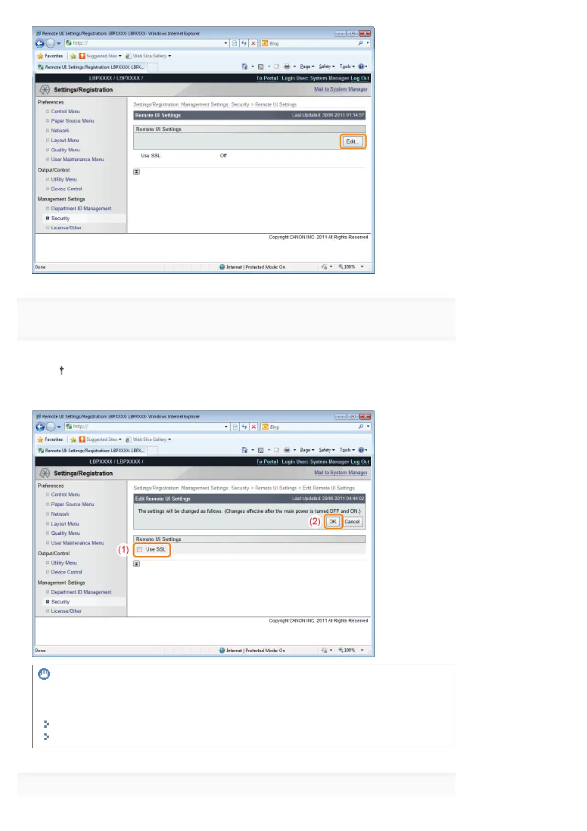 If you clear the check box, the remote UI cannot use SSL encrypted communication.