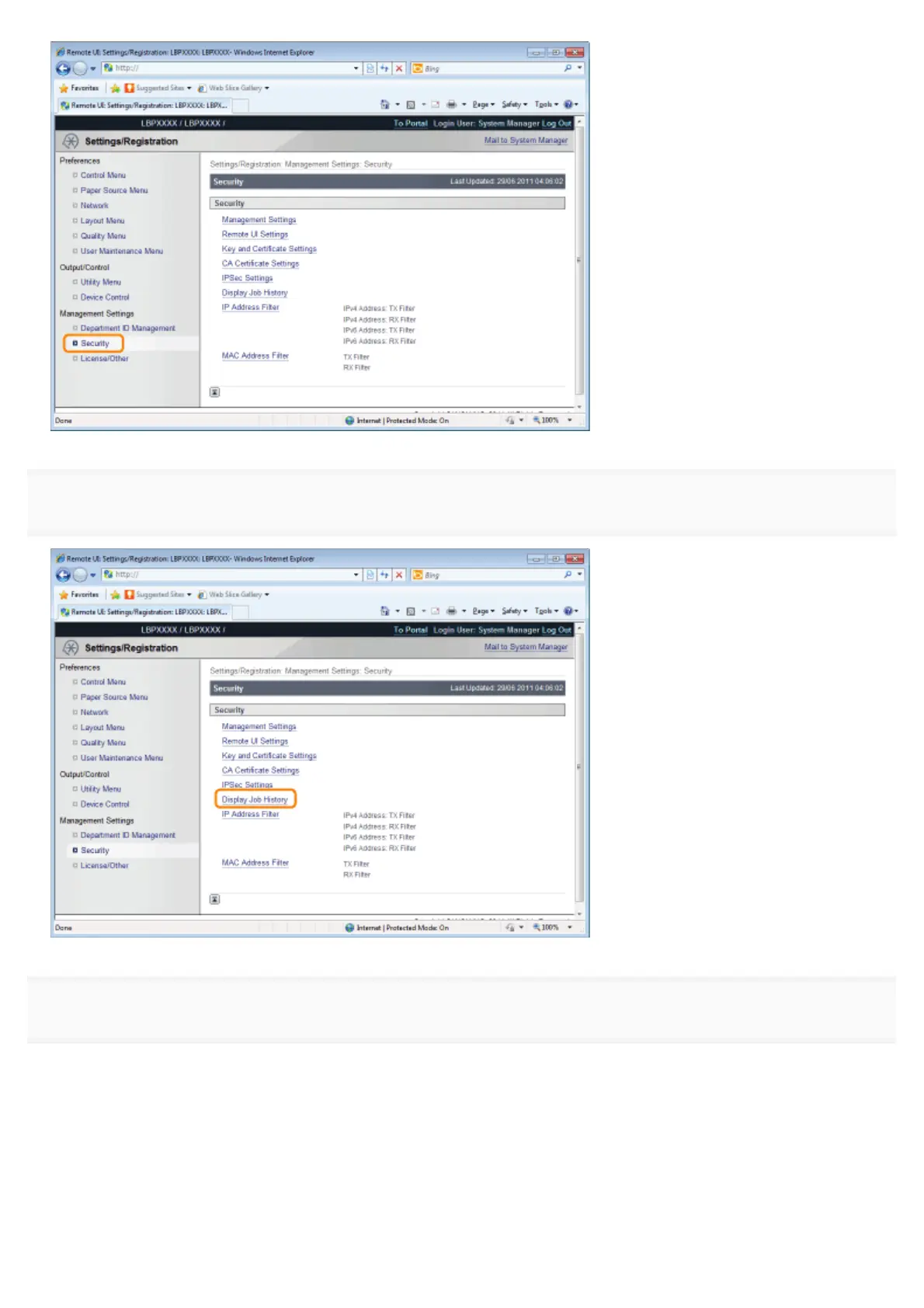 Click [Display Job History].