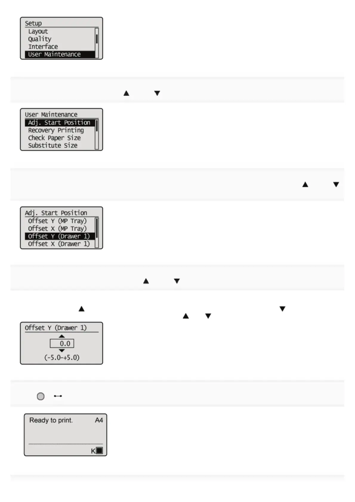 Select the direction and paper source that you want to check the printing position using [ ] and [
