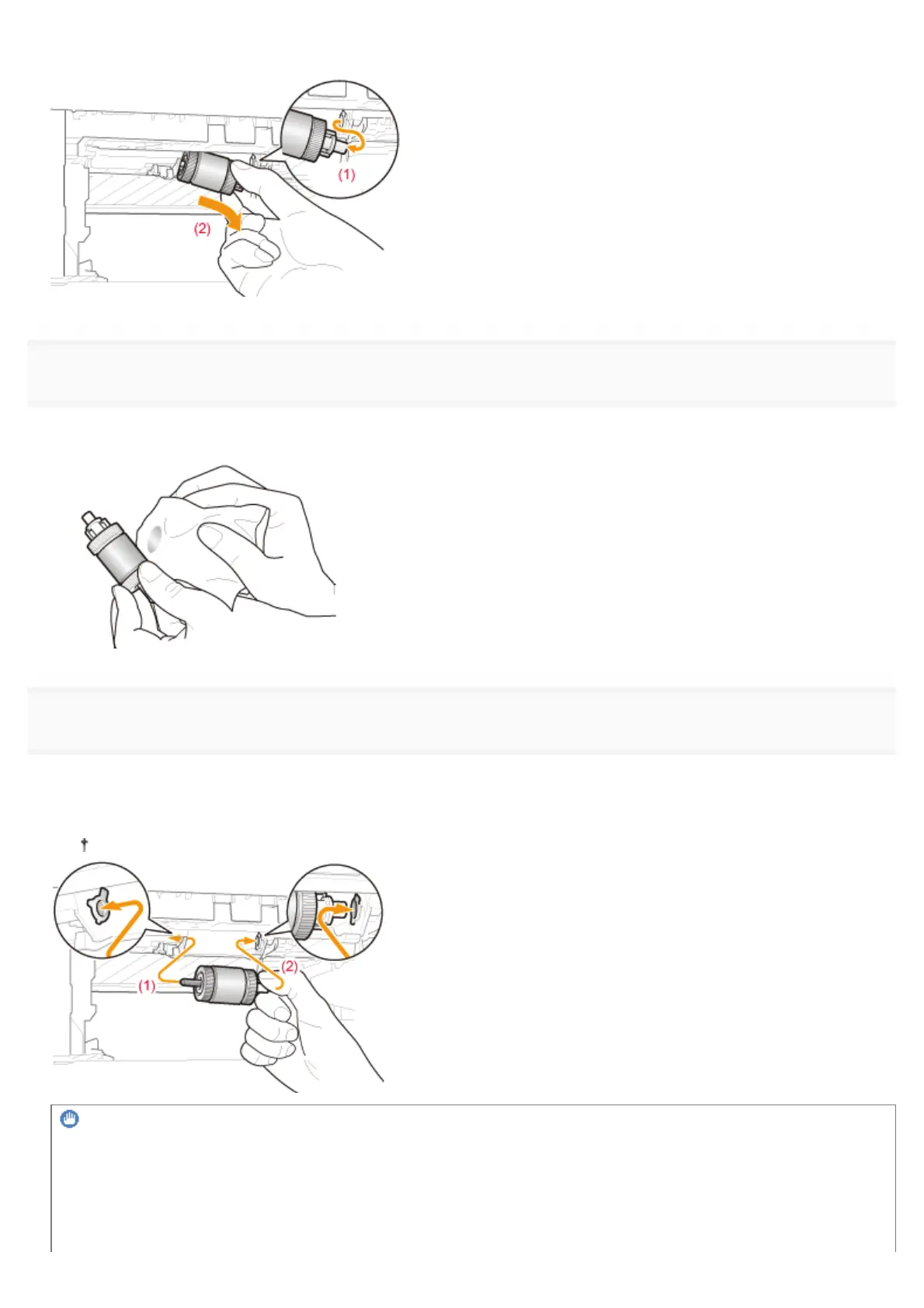 Making sure not to touch the rubber pad directly with your hand, wipe the feed roller with a cloth dampened with water and