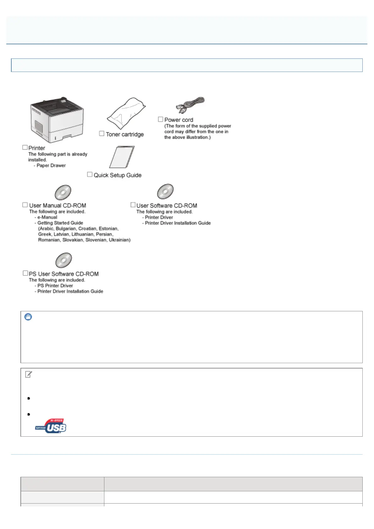 Make sure that all the supplied accessories are contained in the box before installing the printer.