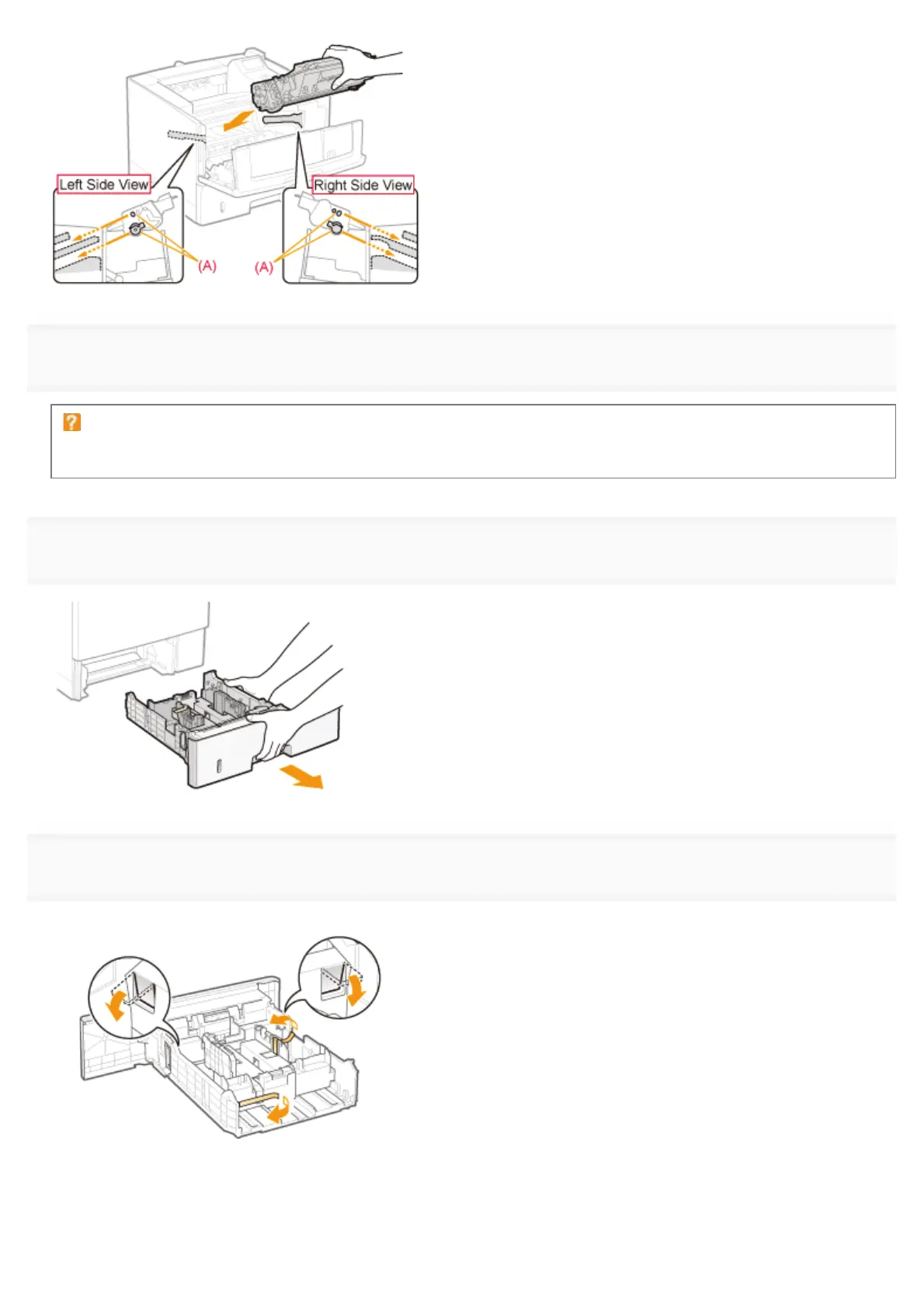 (2) While holding the lock release levers (A), slide the paper guides in the directions of the arrows.