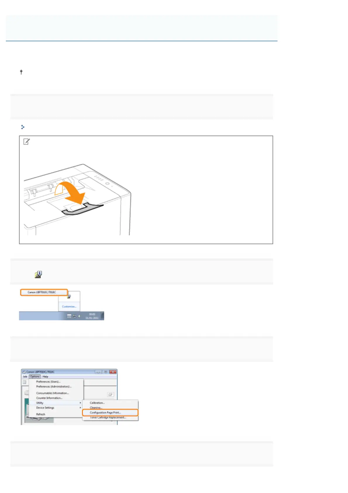 Configuration Page Print shows the settings of the printer unit and other current printer information.