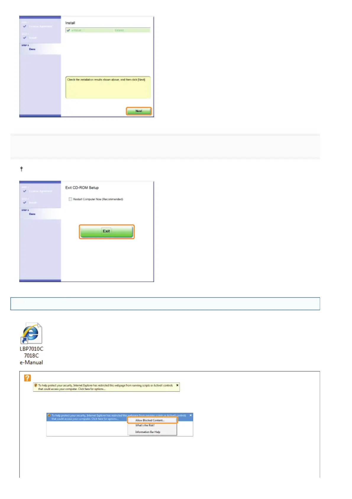 1. Click the information bar, and then select [Allow Blocked Content] from the pop-up menu.