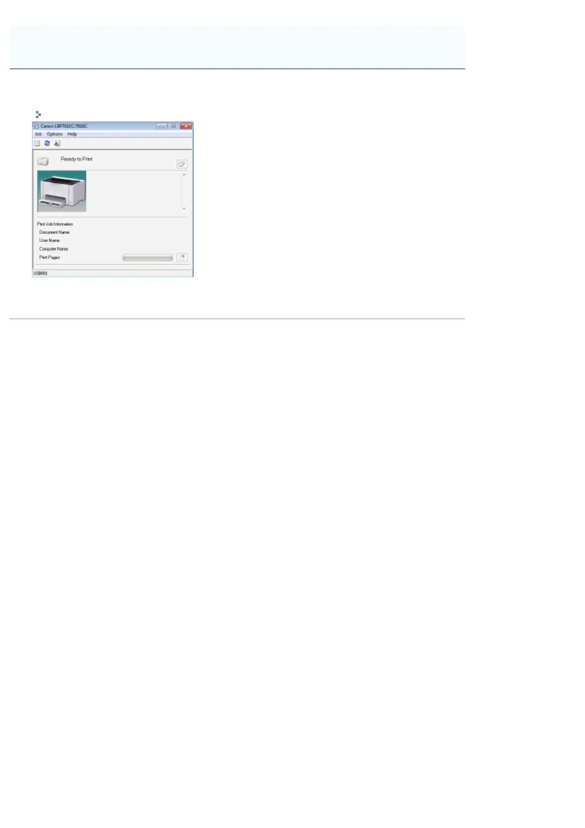 The Printer Status Window shows the current printer status with messages, animations, and icons.