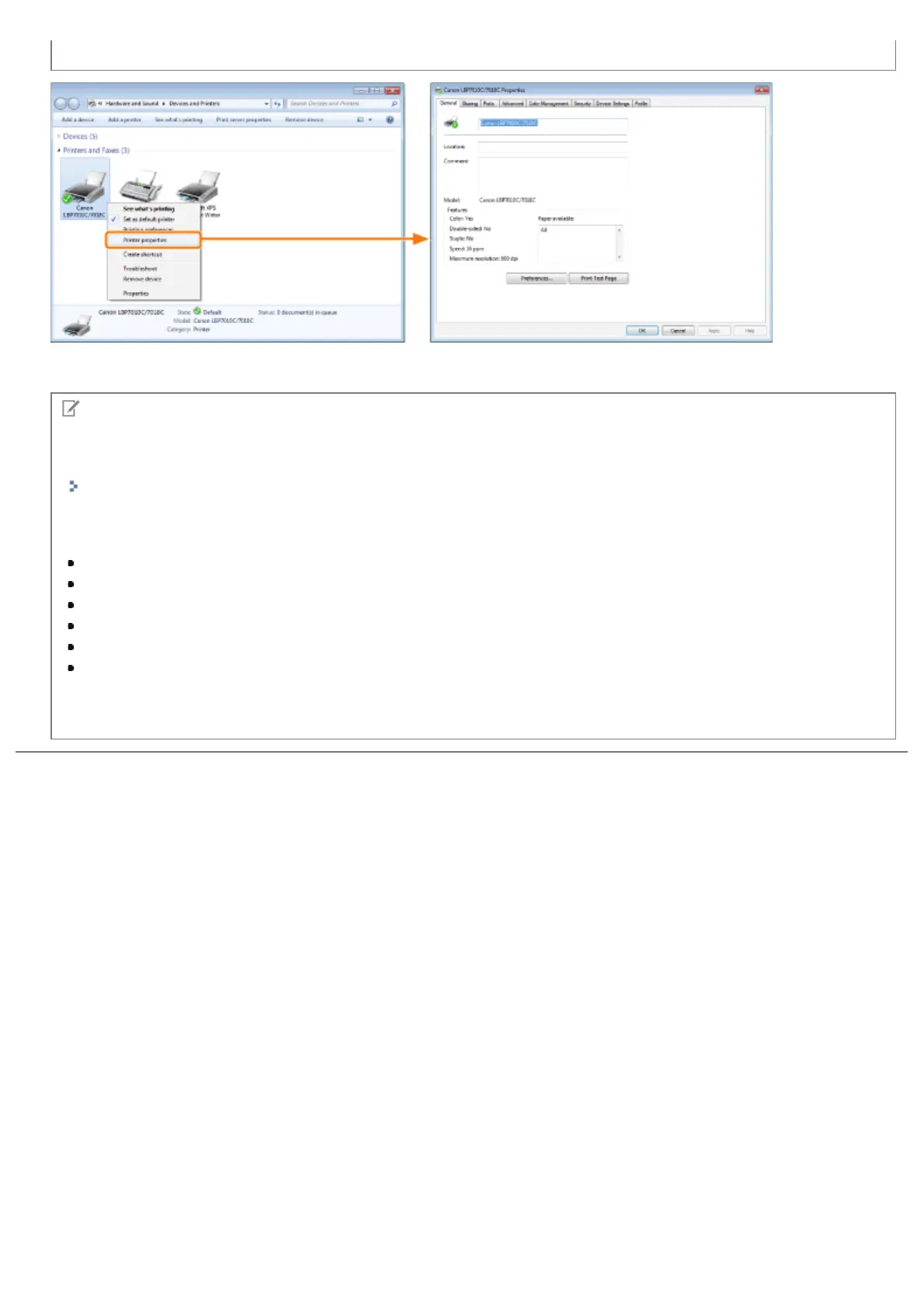 Right-click the icon for this printer, and then select [Printer properties] or [Properties] from the pop-up menu.