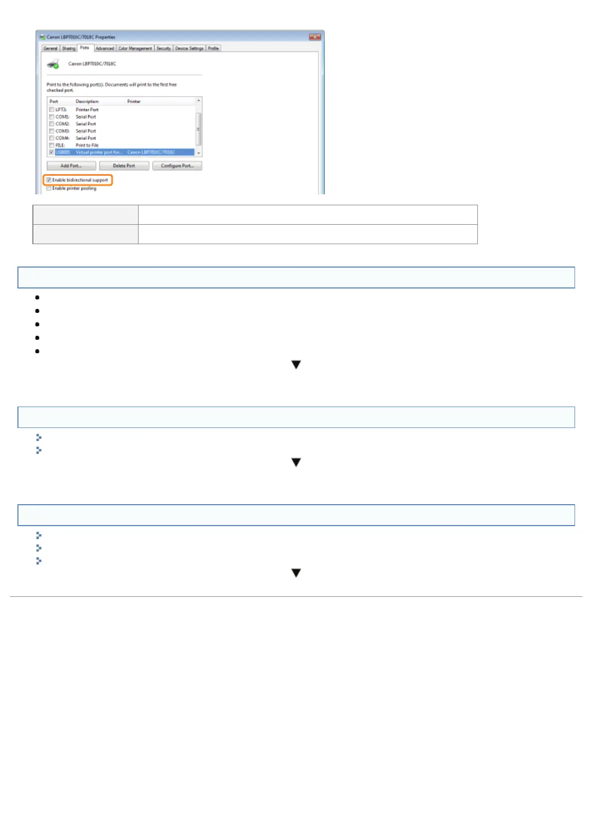 Not enabled Enable bi-directional communication and restart the computer and printer.
