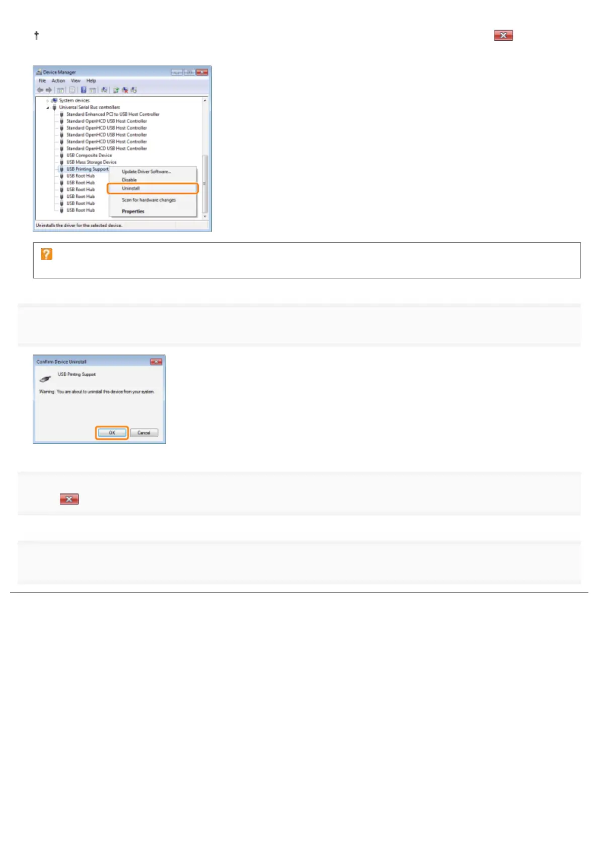 Select the USB class driver which is displayed as [Unknown device], and then uninstall it.