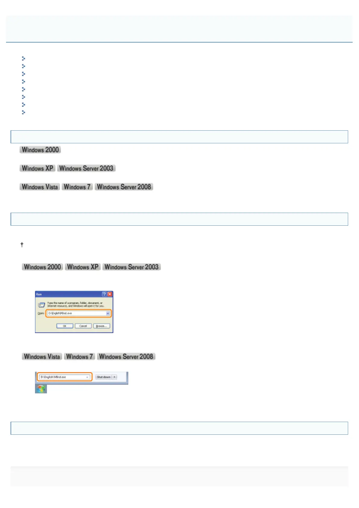 1. Enter "D:\English\MInst.exe" in [Search programs and files] or [Start Search] under the [Start] menu.